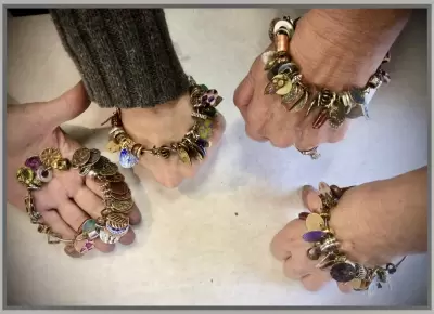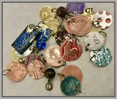 In this class students will explore many different techniques to add texture and color to metal. We will be mixing base metals in this class, copper, yellow brass, and nickel silver. We will be embossing, impressing, stamping, and metal etching. Students will also be shown how to use a metal disc cutter and dapping and doming block. Students will learn a great variety of cold connections to adhere some of their metal pieces together. Riveting, eyelet setting, wire wrapping, and micro screws will be demonstrated and taught.