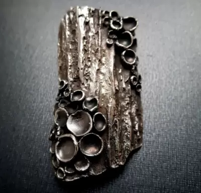 Starting with a mold of real tree bark, make an unusual, organic pendant out of fine silver. You will learn how to give your piece a realistic curve, make “lichen” in various sizes, as well as how to attach them securely. No two pendants will be the same!