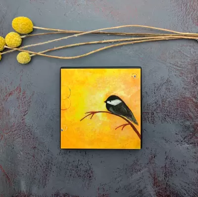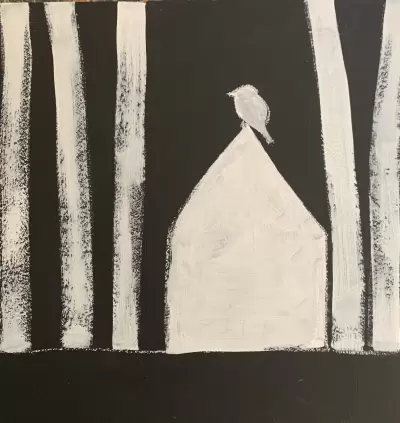 The style of folk art painting is simple imagery with rustic lines, often telling a story of everyday life. In this class we will paint a grove of birch trees surrounding a cozy house. Chickadees are charming chunky birds that add light and joy to the landscape and we will fill the house by drawing some of our favorite things (examples are: flowers, food, coffee, cat/dog, books). No experience is necessary. Your painting and drawing style will emerge throughout the class. Individuality is what makes each artist shine. We will use chalk as an outline so there is lots of time to practice/erase/fine tune your work.