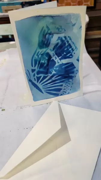Let the sun create your next work of art. Play with some fun cyanotype techniques. We can use pressed flowers and plants, old xrays, tools, stencils, and more to create cyanotype prints on paper and canvas.