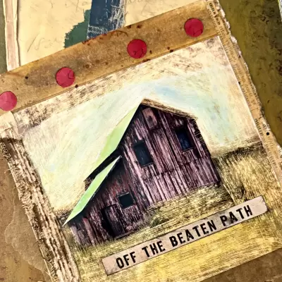 In this jam-packed, one-day workshop, we will be using a zillion (I counted) different techniques to create an artist book. We will start by making a handbound book with a no-sew binding. From there we will move on to create painted backgrounds for our book pages. We will then create collages to serve as the focal points for our pages. As a final touch, our covers will be embellished to add dimension and detail. Because of the wide range of techniques included and the varied speed at which artists work, you may or may not leave the workshop with every page complete.