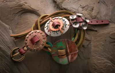 Derived from the Spanish word for "seashell," conchos are created using a basic metals technique called shallow or shell forming. Together, we’ll explore the use of various jewelry making tools and materials as the basis for creating a couple of interesting riffs on simple bowl-like forms we have created from square, round or oval base shapes. Explore different attachment systems and learn several kinds of joining unlike materials via rivets, tabs, slots and stitch. Finally, you’ll be able to securely mount finished conchos to different substrates like fiber, leather and vinyl, because you’ll want to wear those works of art!