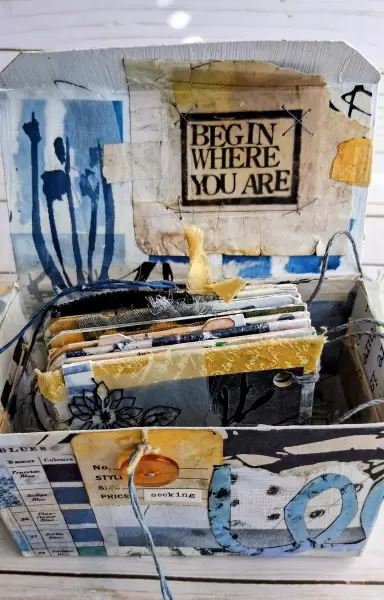 Give new life to the overlooked. In this hands-on workshop, we transform the mundane into the magnificent by looking past the "scrap" pile to find the hidden potential in tea boxes, old papers, and forgotten textiles. This class is about more than just traditional bookbinding; it’s about the art of paper alchemy. You will learn how to deconstruct everyday recyclables and reassemble them into a unique artist book. Throughout the process, you will prep your tea boxes and recycled materials, and create your own custom collage elements using expressive mark-making techniques with paint and drawing tools.