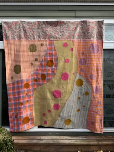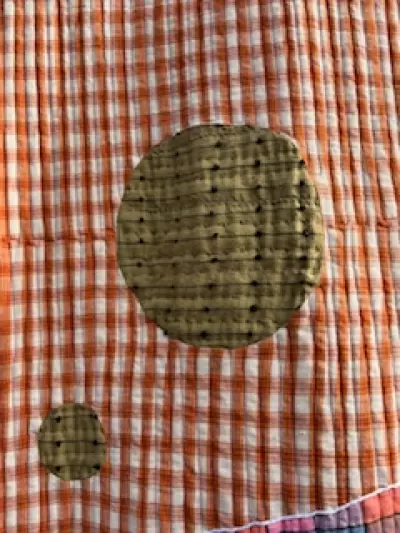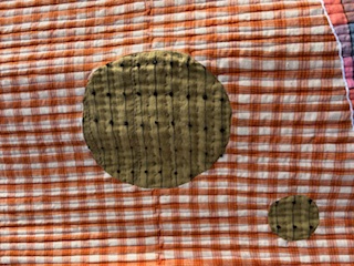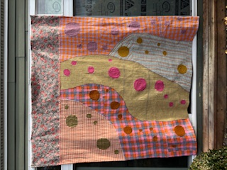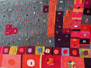 We will make 5 or 6(or more)squares with inset circles in the centers. We will make centers with strip piecing or scrap piecing and change the sizes as we experiment. These can be combined for a larger finished quilt top or quilted separately.